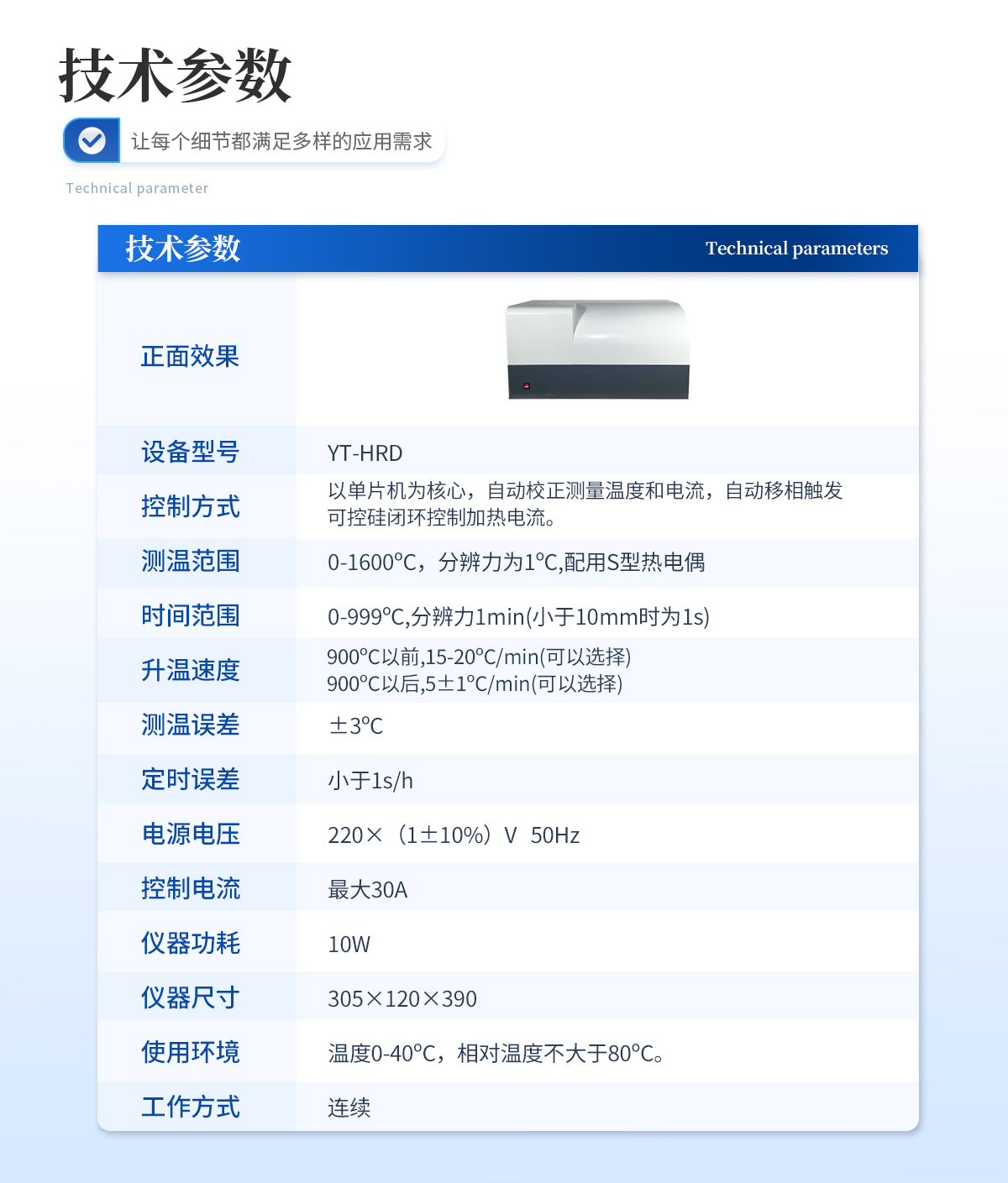 | 1、控制方式:以单片机为核心,自动校正测量温度和电流,自动移相触发可控硅闭环控制加热电流。 | 2、测温范围:0-1600oC,分辨力为1oC,配用S型热电偶. | 3、时间范围:0-999oC,分辨力1min(小于10mm时为1s) | 4、升温速度:900oC以前,15-20oC/min(可以选择).900oC以后,5±1oC/min(可以选择) | 5、测温误差:±3oC | 6、定时误差:小于1s/h | 7、电源电压:220×(1±10%)V 50Hz | 8、控制电流:**30A | 9、仪器功耗:10W | 10仪器尺寸(mm):305×120×390 | 11、使用环境:温度0-40oC,相对温度不大于80oC | 12、工作方式:连续 |