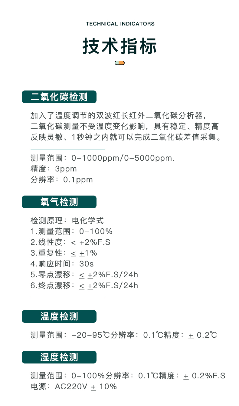 加入了温度调节的双波长红外二氧化碳分析器,二氧化碳测量不受温度变化影响,具有稳定、精度高,反映灵敏,1秒钟之内就可以完成二氧化碳差值采集。